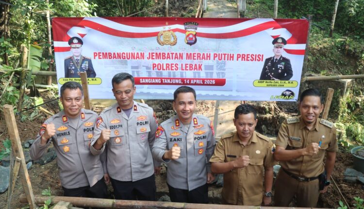 Lebak – Kapolres Lebak Polda Banten AKBP Herfio Zaki, SIK, MH melaksanakan peletakan batu pertama pembangunan Jembatan Merah Putih di Kampung Cikaduen, Desa Sangiang Tanjung, Kecamatan Karanganyar, Kabupaten Lebak, Selasa (14/4/2026).