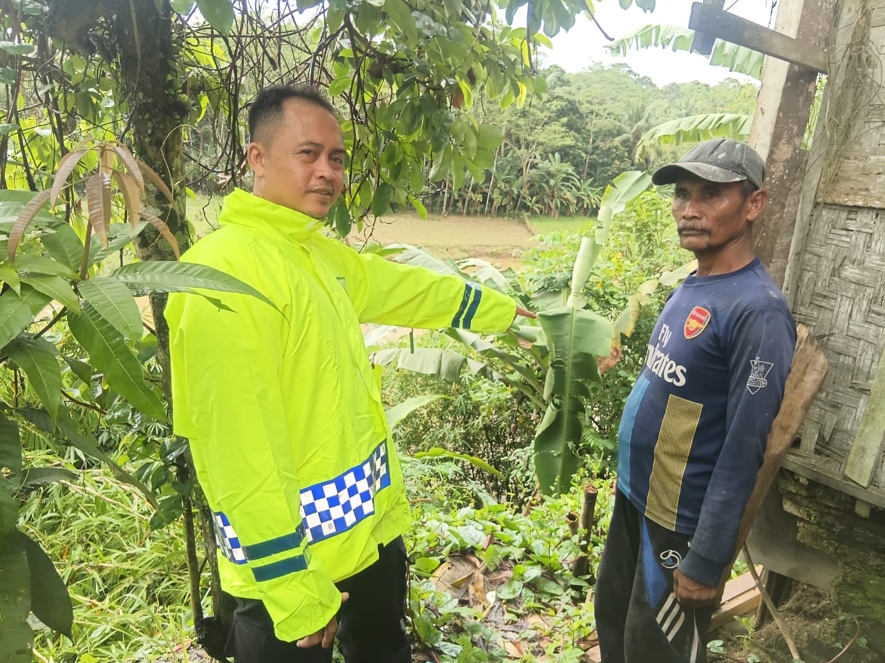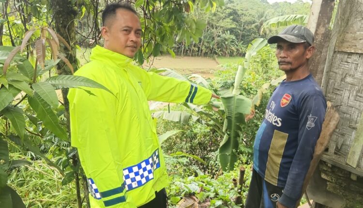 Personil Polsek Cikulur Polres Lebak Monitoring Rumah Warga Yang Terkena Longsor Akibat Curah Hujan Tinggi